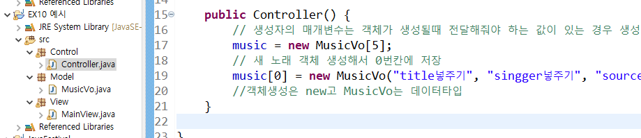 //객체생성은 new고 MusicVo는 데이터타입