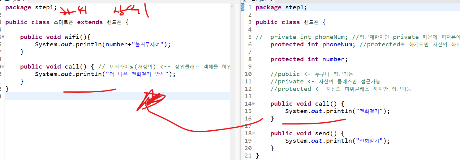 phone4.call();// 재정의된 값이 나타난다. <- 상속은 더 구체적인것을 만들어가는 과정이기 때문에 재정의된 하위 값이 나오게 된다.