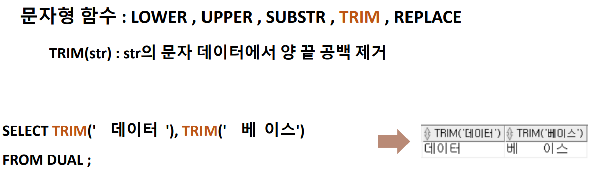 3.SUBSTR : SUBSTR(str,x,y) : str의 문자 데이터를 x째자리부터 y개까지 절단