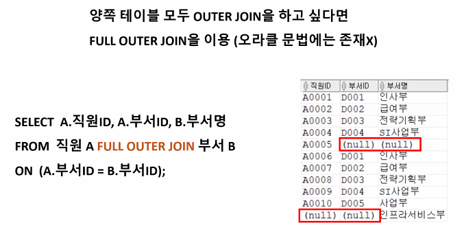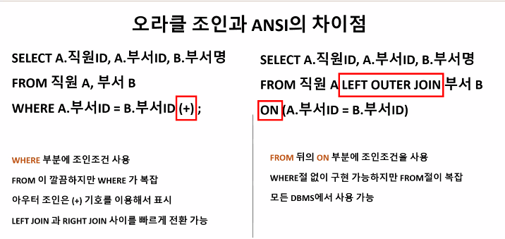 ORACLE에서만 +를 OUTER JOIN으로 사용한다.